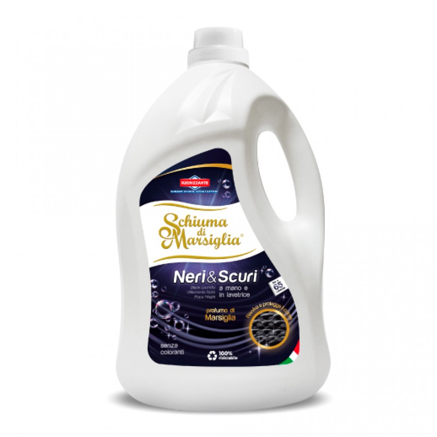 Detersivo liquido igienizzante studiato per capi neri e scuri, per bucato a mano e in lavatrice.