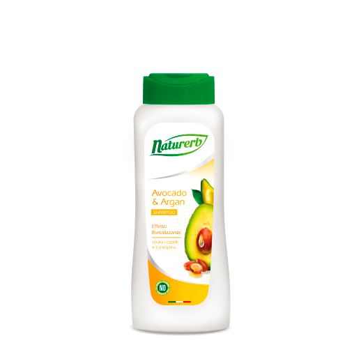 Lo Shampoo Naturerb al profumo di Avocado e Argan è adatto per tutti i tipi di capelli, rinforzandoli e idratandoli.
