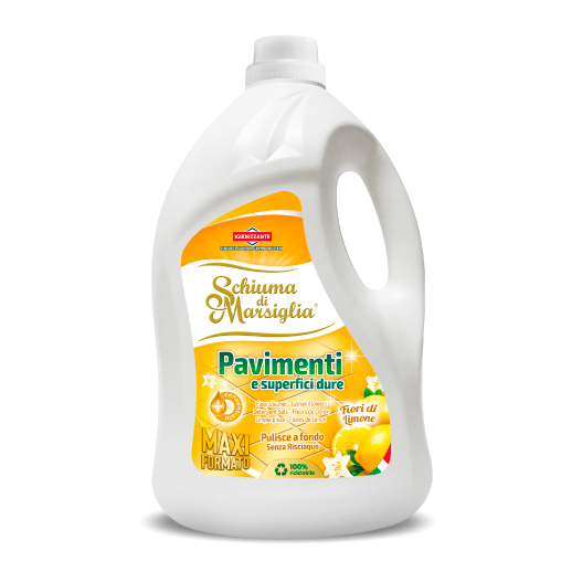 Detersivo igienizzante per pavimenti e superfici dure al profumo di Fiori di Limone. La sua formula igienizzante pulisce a fondo pavimenti e superfici dure senza bisogno di risciacquo, lasciando una gradevole fragranza.