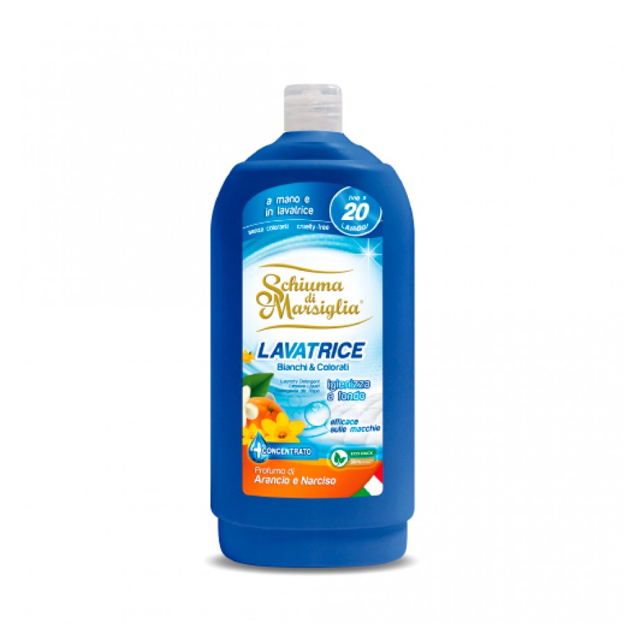 Detersivo liquido igienizzante Arancio e Narciso, per bucato a mano e in lavatrice.