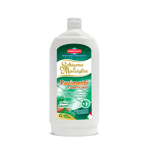 Detersivo igienizzante per pavimenti e superfici dure al profumo di Pino Silvestre. La sua formula igienizzante pulisce a fondo pavimenti e superfici dure senza bisogno di risciacquo, lasciando una gradevole fragranza.