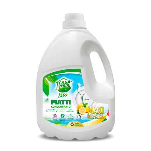 Detergente concentrato Piatti Bio al profumo di limone. Dermatologicamente testato e prodotto con materie prime da agricoltura biologica. Per questo certificato da AIAB Detergenza e Qualità Vegana da QCertificazioni. Senza ingredienti animali nè testato su di essi, è quindi certificato Cruelty Free da LAV.