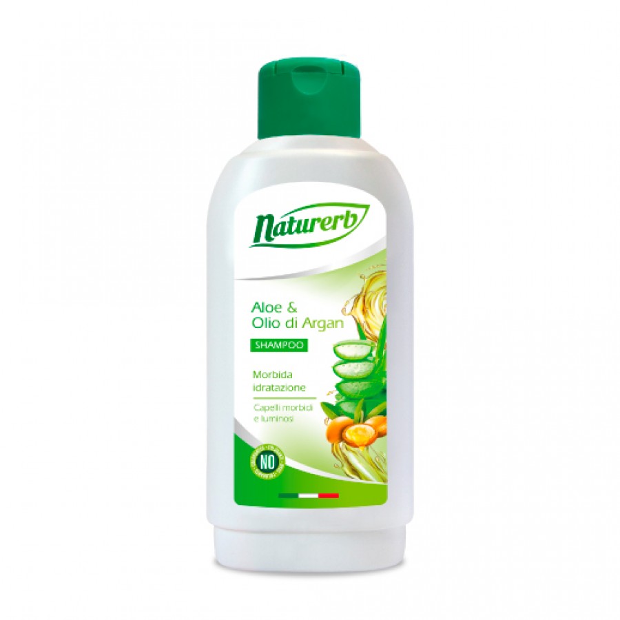 Lo Shampoo Naturerb al profumo di Aloe e Olio di Argan è adatto per tutti i tipi di capelli, rinforzandoli e idratandoli. Morbida idratazione.