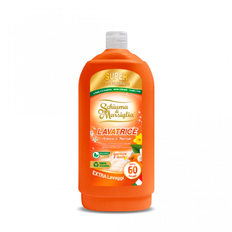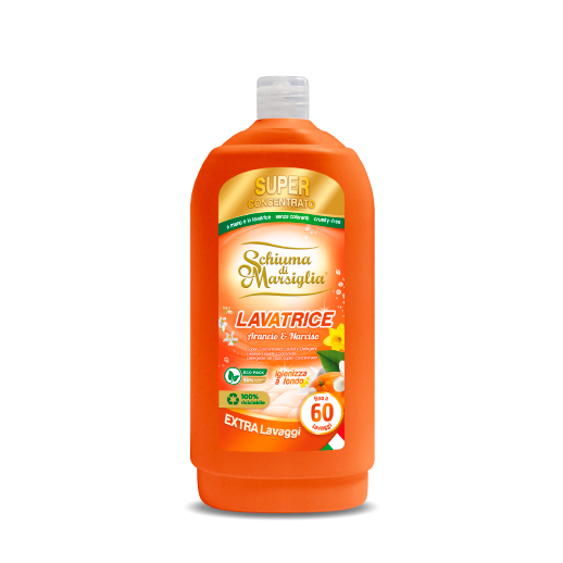 Detersivo liquido igienizzante Super Concentrato Arancio e Narciso, per bucato a mano e in lavatrice.