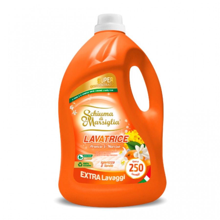 Detersivo liquido igienizzante Super Concentrato Arancio e Narciso, per bucato a mano e in lavatrice.