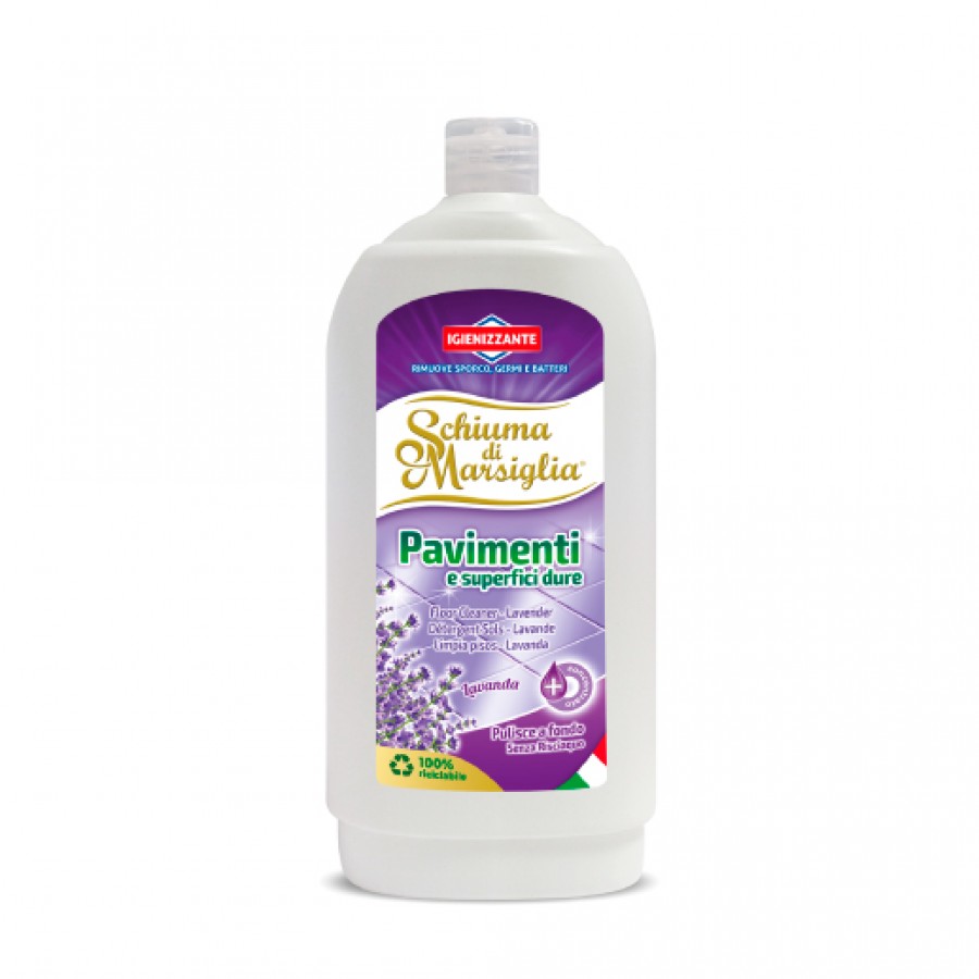 Detersivo igienizzante per pavimenti e superfici dure al profumo di Lavanda. La sua formula igienizzante pulisce a fondo pavimenti e superfici dure senza bisogno di risciacquo, lasciando una gradevole fragranza.