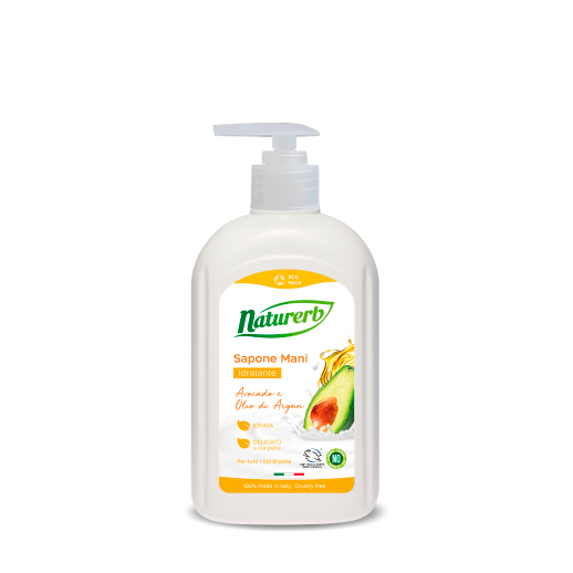 Sapone Mani liquido al profumo di Avocado e Olio di Argan, adatto ad una detergenza quotidiana veloce ed efficace, con azione igienizzante. Lascia le mani morbide e profumate, per una quotidiana idratazione.