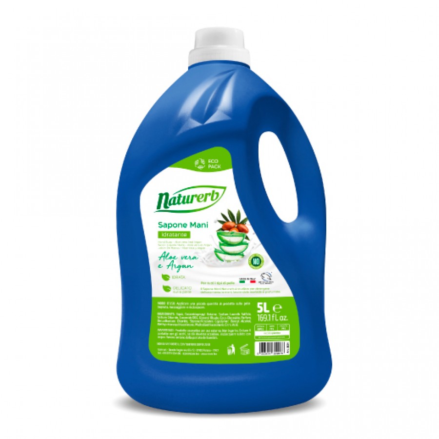 Sapone Mani liquido al profumo di Aloe vera e Argan, adatto ad una detergenza quotidiana veloce ed efficace, con azione igienizzante. Lascia le mani morbide e profumate, per una quotidiana idratazione.