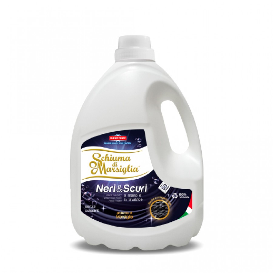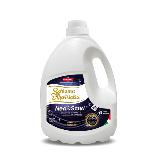 Detersivo liquido igienizzante studiato per capi neri e scuri, per bucato a mano e in lavatrice.