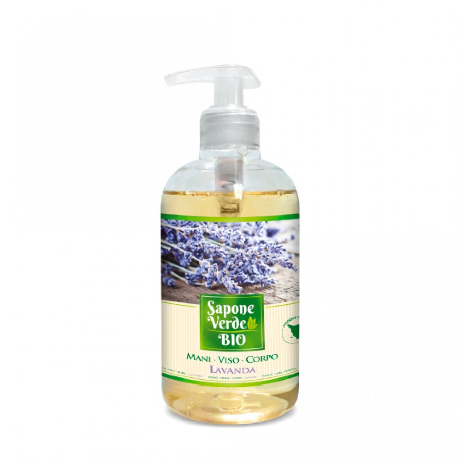 Sapone liquido per mani, viso e corpo a base di tensioattivi di origine vegetale, nel formato da 500 ml al profumo di Lavanda. Arricchito con estratto di Lavanda proveniente da agricoltura biologica. Grazie ai suoi componenti deterge la pelle lasciandola morbida e idratata. Dermatologicamente testato, è adatto per ogni tipo di pelle.